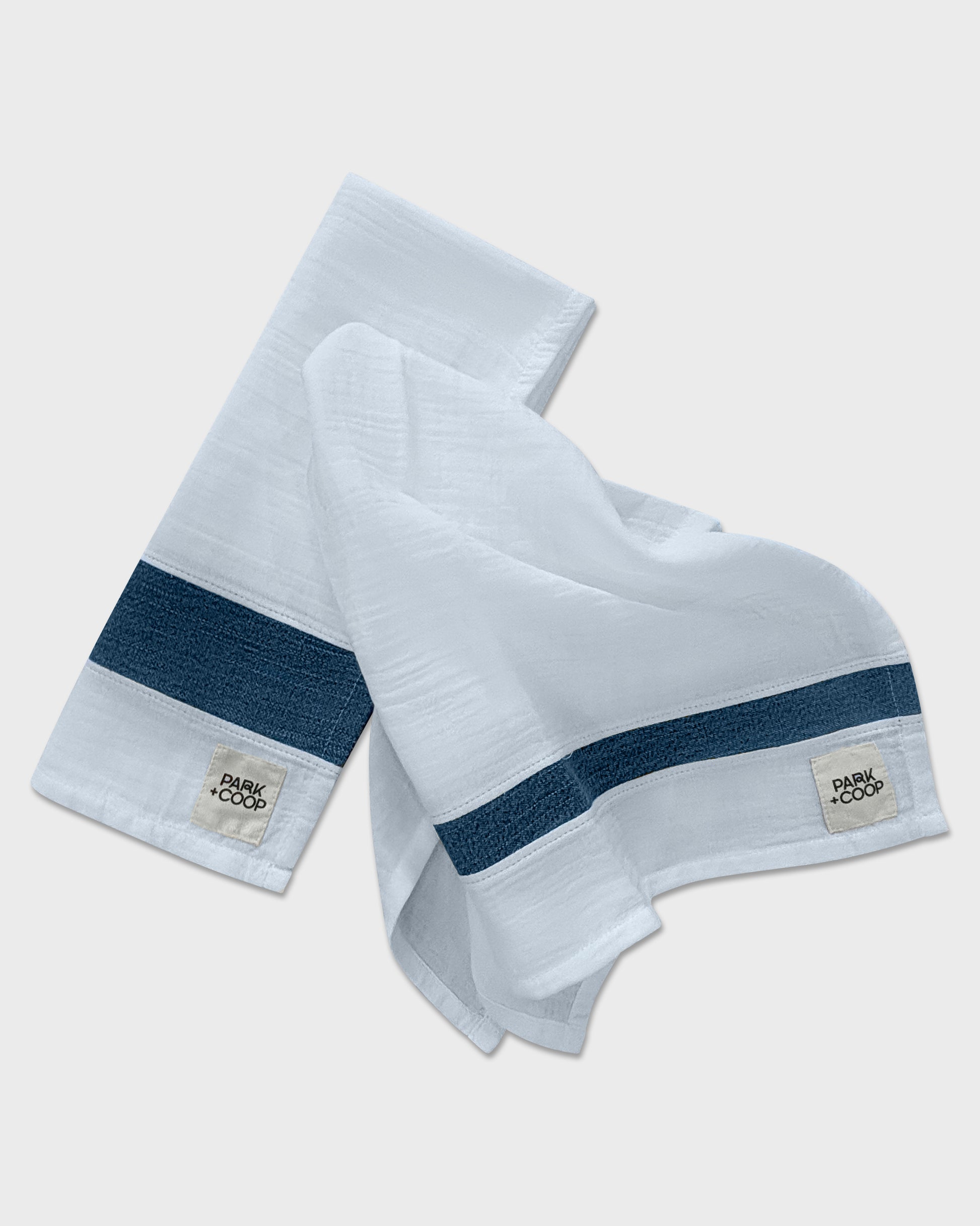 **Want to use your own fabric or that of someone you love to make a memory piece? Once you place your order, we’ll send you a mailer to easily return your fabric to us. To make the towel send a non-stretchy, non-knit fabric at least 20"w x 28" h. To choose your own stripe send us fabric at least 20"w x 3"h. We’ll handle the rest! If we do not receive enough fabric we cannot make your item and you will be charged for the mailer shipping. It's important to note that the Park + Coop brand patch will not be added to custom towel colors.