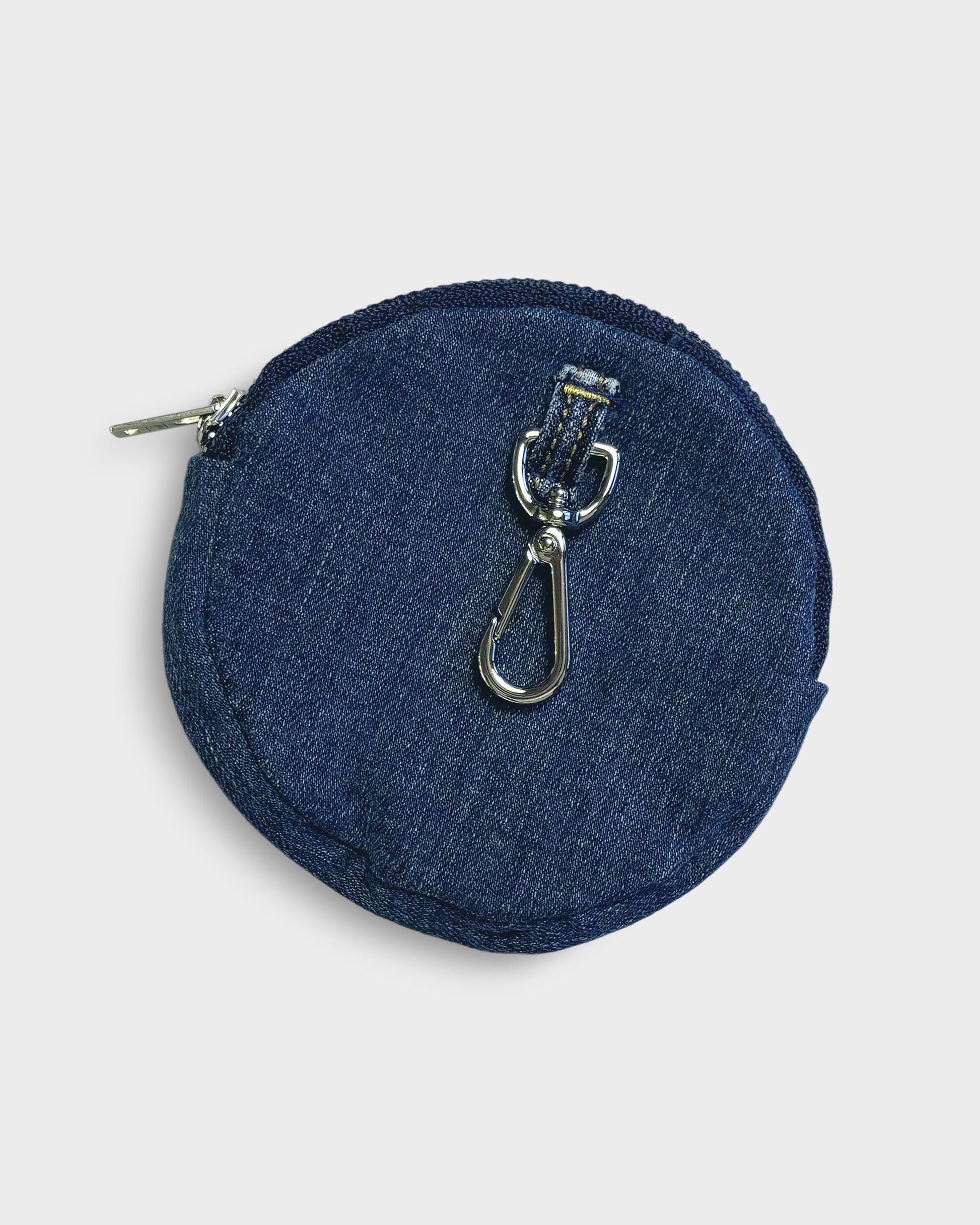 This coin purse is denim-lined and wide enough to fit credit cards and metro passes, if needed. You can throw it in a pocket or dock it to other items in our B+T system, to keep small things handy and easy to find. You can also attach it right to your belt loop.