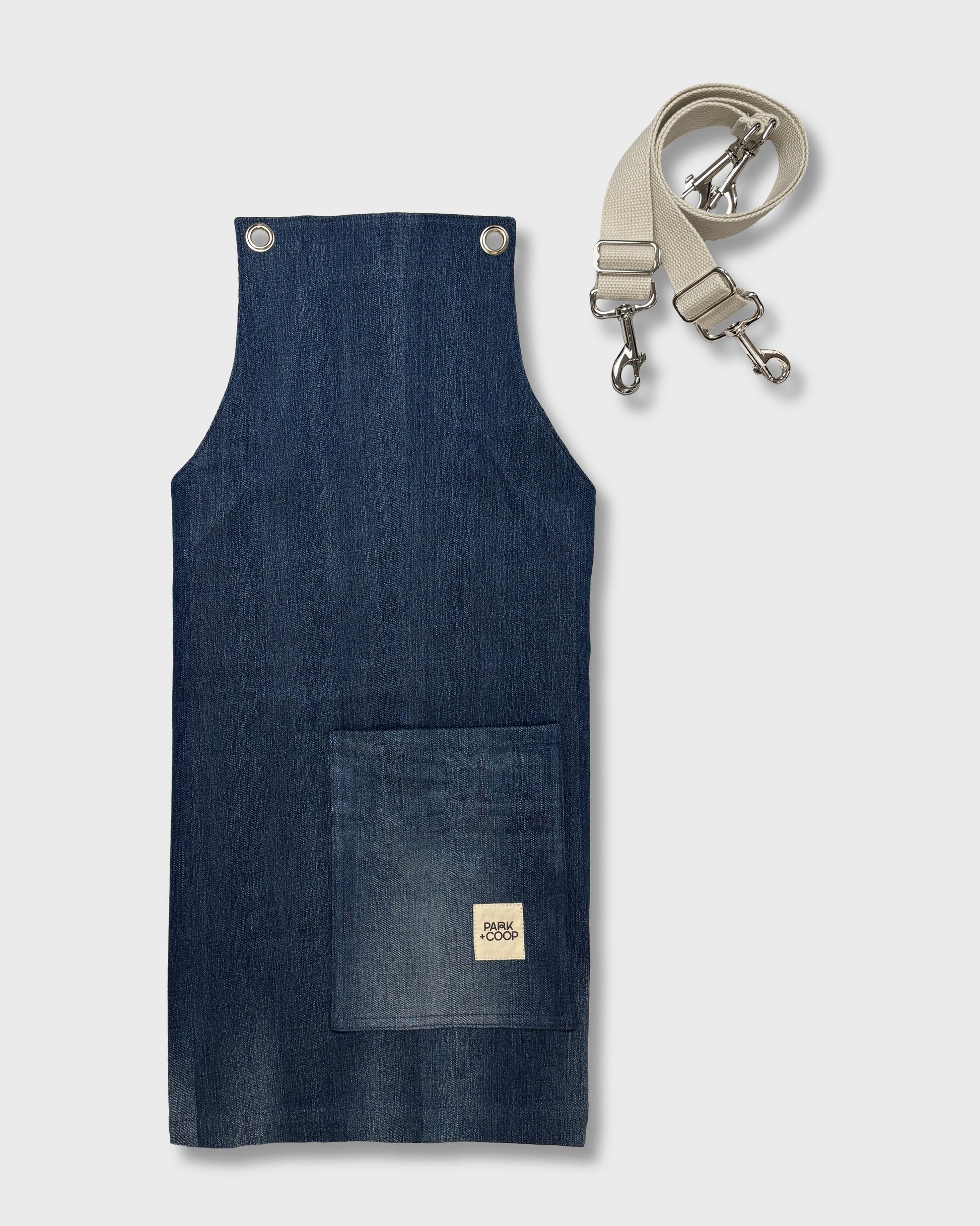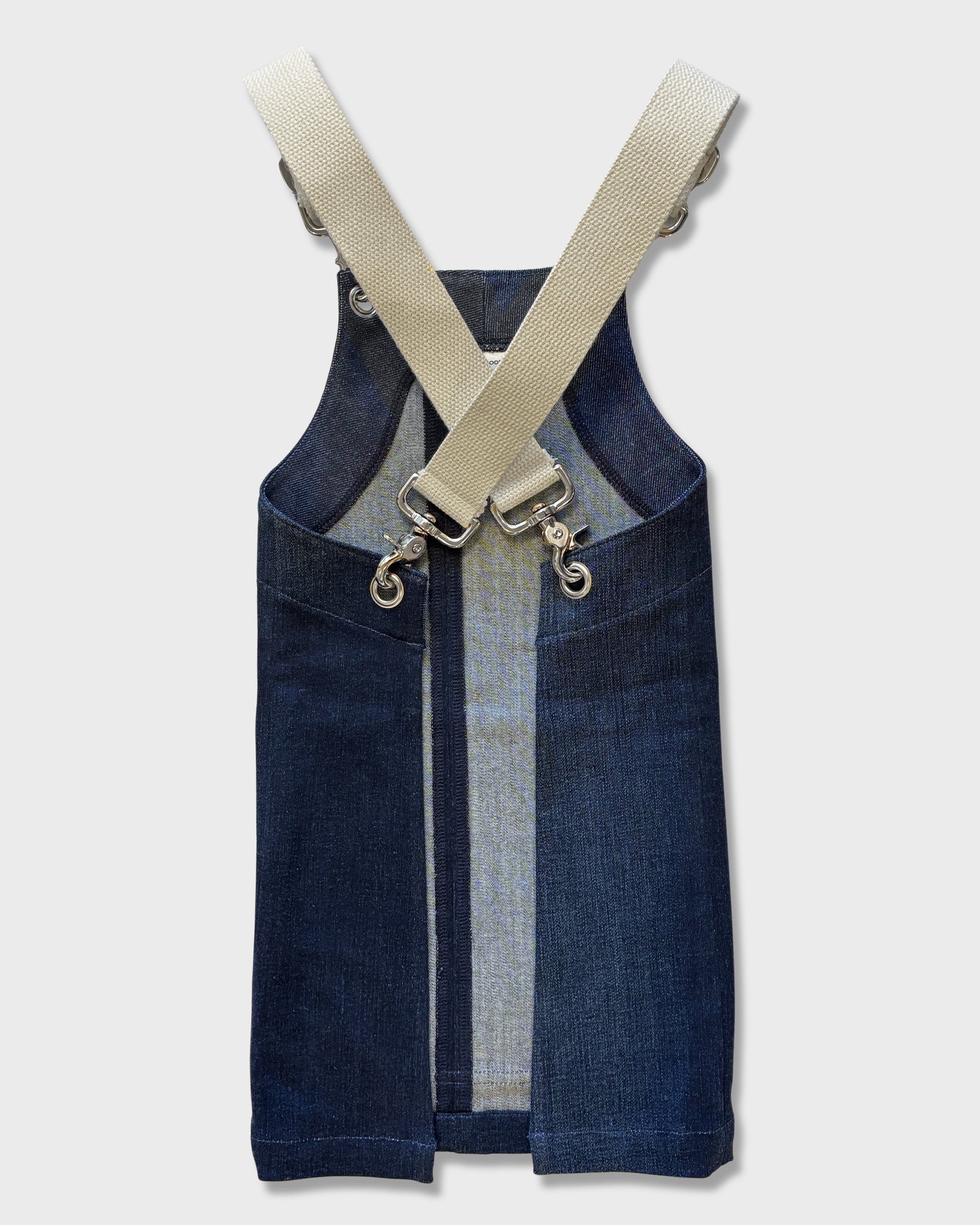 Offered in mini (typically fits ages 2-6) and youth (typically fits ages 7-12 or teen under 5'3"), this upcycled denim apron features an oversized pocket and adjustable straps that clip on and off. Straps cross in the back and clip at the opposite waist so they don't come untied.